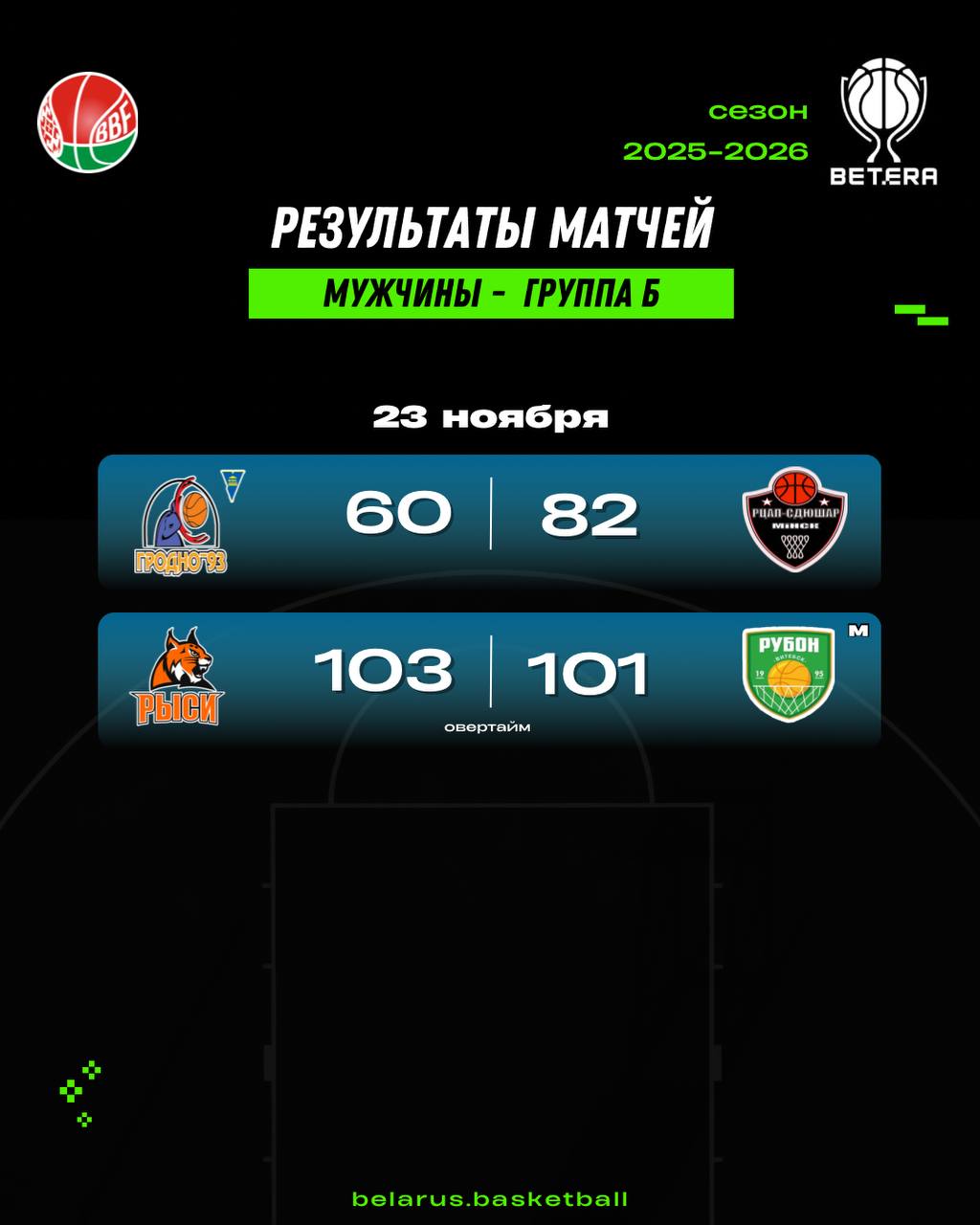 ⚡️Результаты матчей за 23 ноября в группе Б мужского BETERA-чемпионата (https://pm.by/ru/) Беларуси.