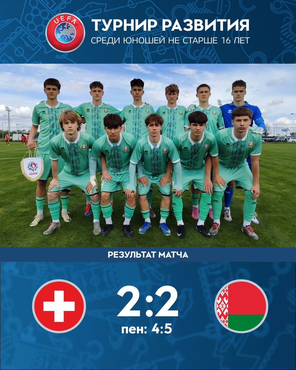 ⚔️ Стоит отметить, что в основное время юношеские сборные разошлись миром. В составе «белакрылых» отличились Кирилл Ковалев и Кирилл Соляник. Исход поединка решился в серии пенальти, где белорусы оказались точнее.